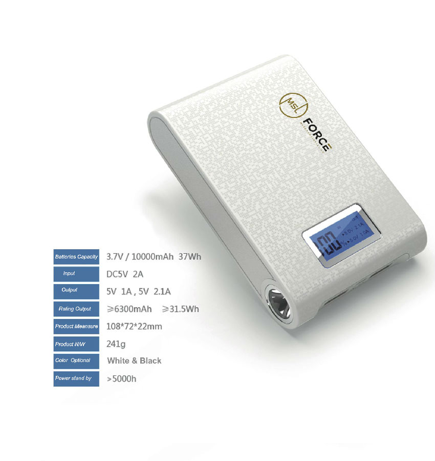 MSL, which stands for 'MADE FOR SIMPLE LIFE', holds a strong belief in designing, developing and carrying out our own production. We are the trustful partner of [promotional sales ] 5v 2a high quality protable power bank external battery pack 10000mah for smart mobile phone, providing online sales at low price and small quantity order acceptable.